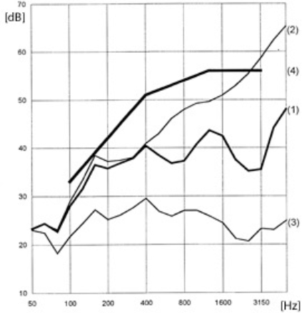 d. Curva de referencia para el cálculo del aislamiento acústico ponderado.