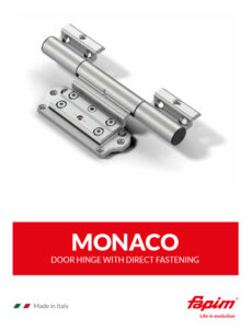 Monaco è la nuova cerniera cilindrica di Fapim ideale per porte dal peso elevato, testata per una portata di 180Kg e certificata CE secondo la norma EN 1935:2002.