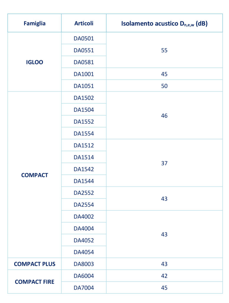 CARATTERISTICHE DI RESISTENZA AL FUMO, AL FUOCO, ISOLAMENTO ACUSTICO E DURABILITÀ